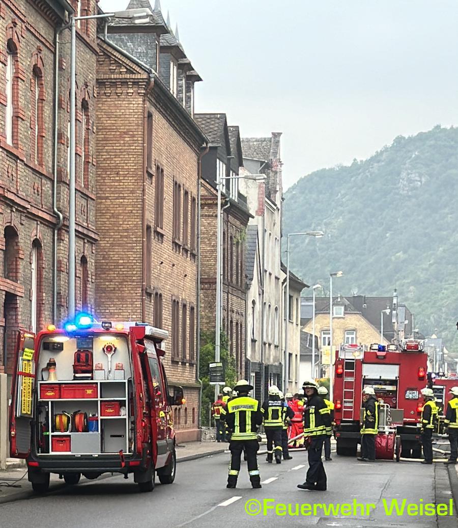 Die Feuerwehr Weisel unterstütze die Einheit St.Goarshausen im Innenangriff bei den Löschmaßnahmen und stellte während des Einsatzes 3 Trupps unter Atemschutz.